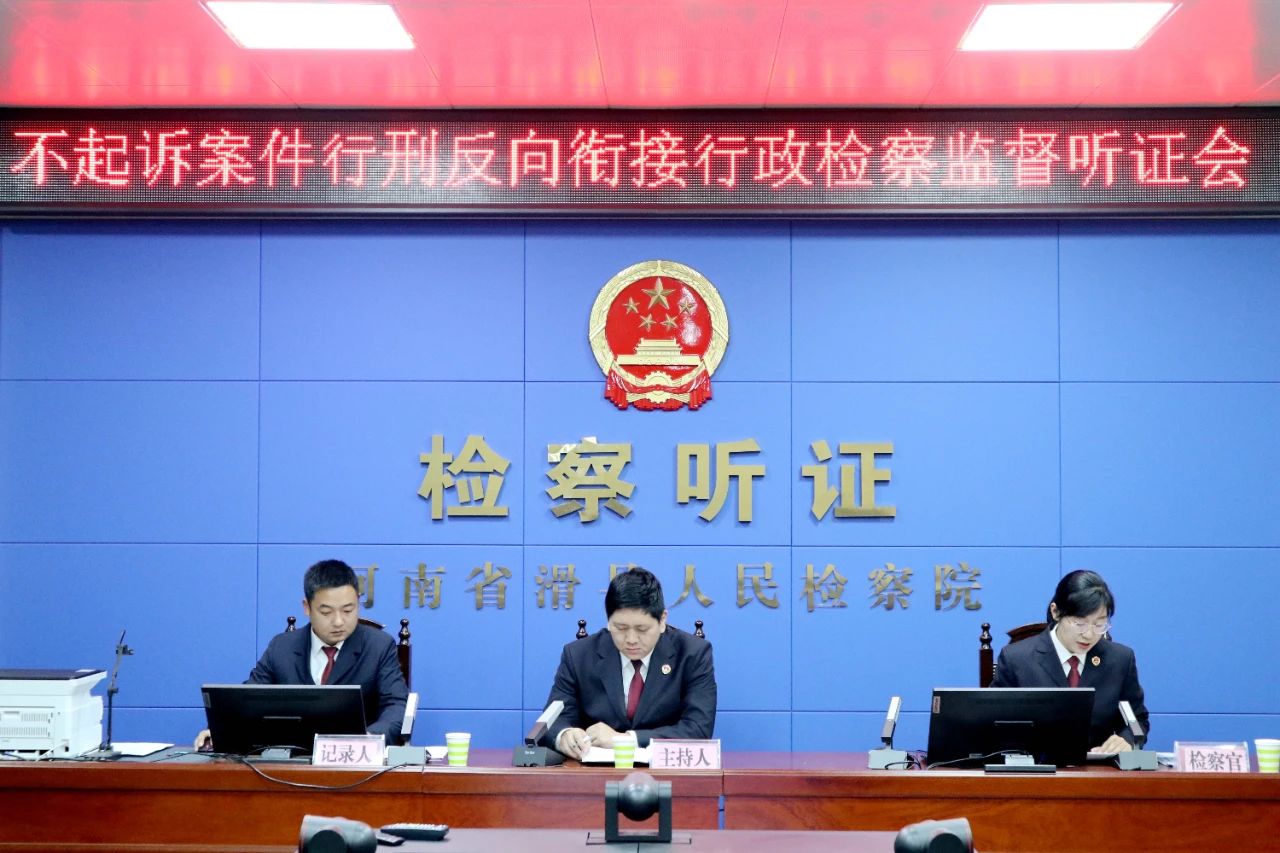 为切实做好行刑反向衔接工作,依法正确行使检察权。11月24日,滑县人民检察院就3起不起诉案件是否予以行政处罚问题召开听证会。会议由院领导吴昶翀主持,公安机关代表参加,并邀请了3名人大代表、政协委员担任听证员。
