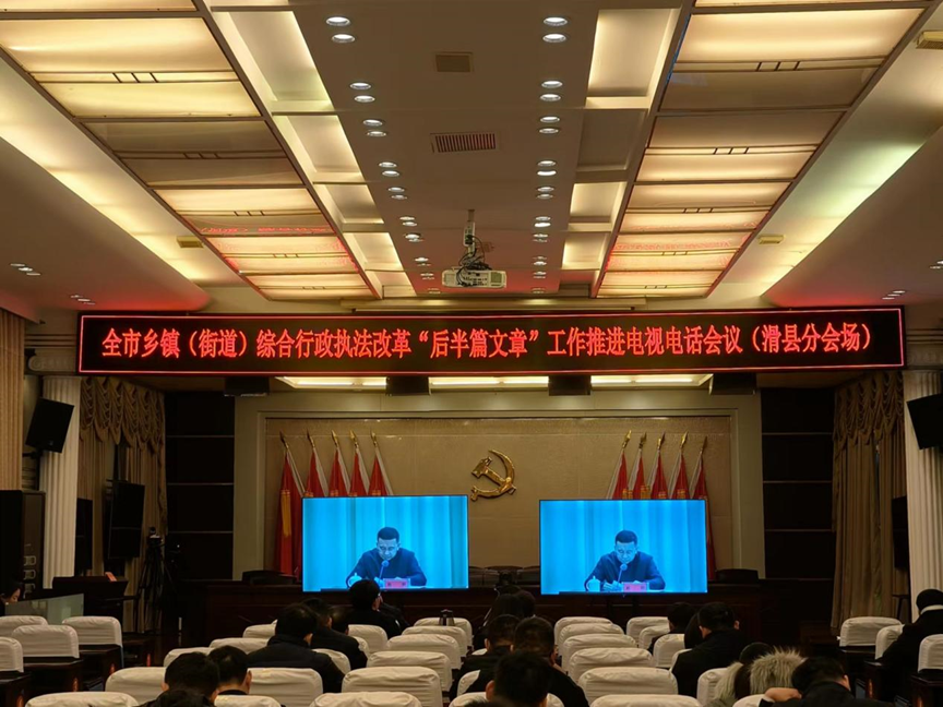 11月28日下午,安阳市乡镇(街道)综合行政执法改革“后半篇文章”工作推进电视电话会召开,我县在县委大会议室设分会场。县委副书记、县长陆志杰,县人大常委会主任王为治,县委常委、统战部部长刘艳菊,县委常委、组织部部长陈海清,全面依法治县委员会成员单位主要领导和部分委员参加会议。