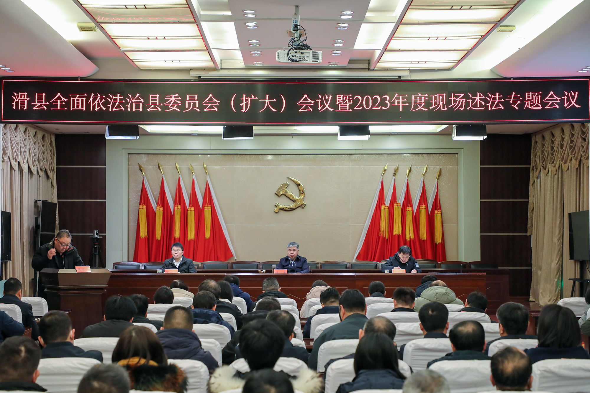 1月16日,我县在县委大会议室召开滑县全面依法治县委员会(扩大)会议暨2023年度现场述法专题会议。安阳市政协副主席、滑县县委书记陈忠,县人民法院党组书记、院长贾红波出席会议,县政府副县长、公安局党委书记、局长臧国民主持会议。