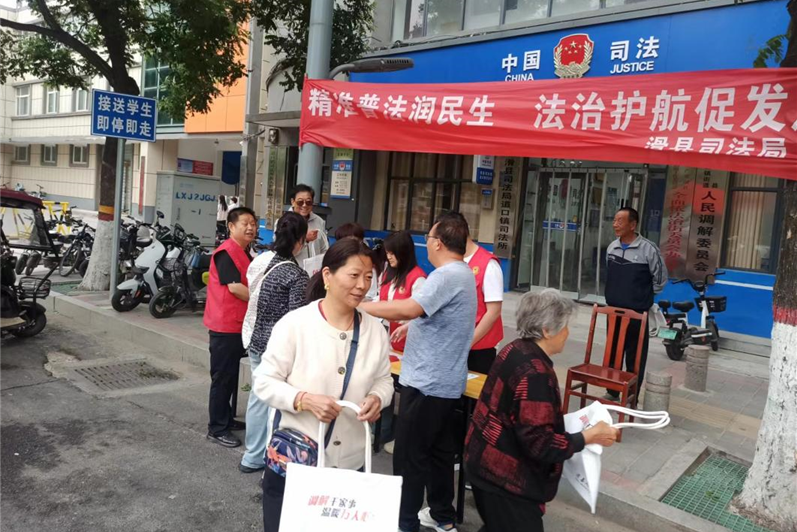 5月20日,滑县司法局道口镇司法所开展了民法典宣传活动,活动现场围绕合同、婚姻家庭、继承等与群众生产生活密切相关的法律法规知识进行宣传,大量居民驻足参与,气氛热烈,活动期间共发放《中华人民共和国民法典进社区》、《中华人民共和国民法典应知应会200问》以及各种宣传资料400余份和法治宣传手提袋200余个。