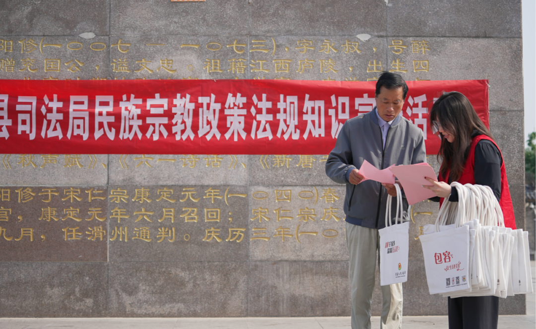 5月21日,滑县司法局在大云寺广场开展“民族宗教政策法规知识宣传活动”,工作人员在现场通过发放宣传页宣传品、讲解与生活密切相关的民族宗教政策法规知识等形式,向广大群众普及党的民族宗教政策法规。