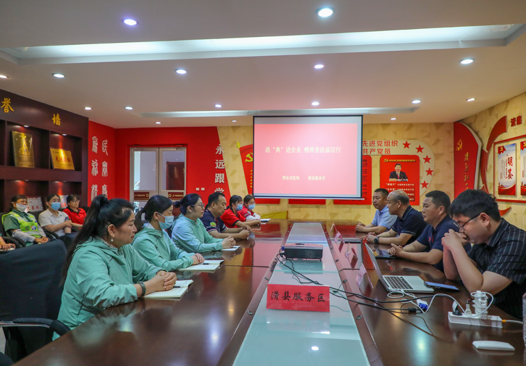 在服务区会议室,律师为在场职工讲解《中华人民共和国民法典》知识,围绕大家关心的合同订立、履行等问题,以经典案例的形式,深入浅出地进行了以案释法,引导广大职工自觉加强法律知识学习,不断增强法治观念。工作人员还通过悬挂横幅、发放民法典知识宣传册和宣传品。在服务区内向商家和过往旅客、大巴车司机讲解民法典知识和营商环境政策,特别是如何应用民法典维护自身权益。