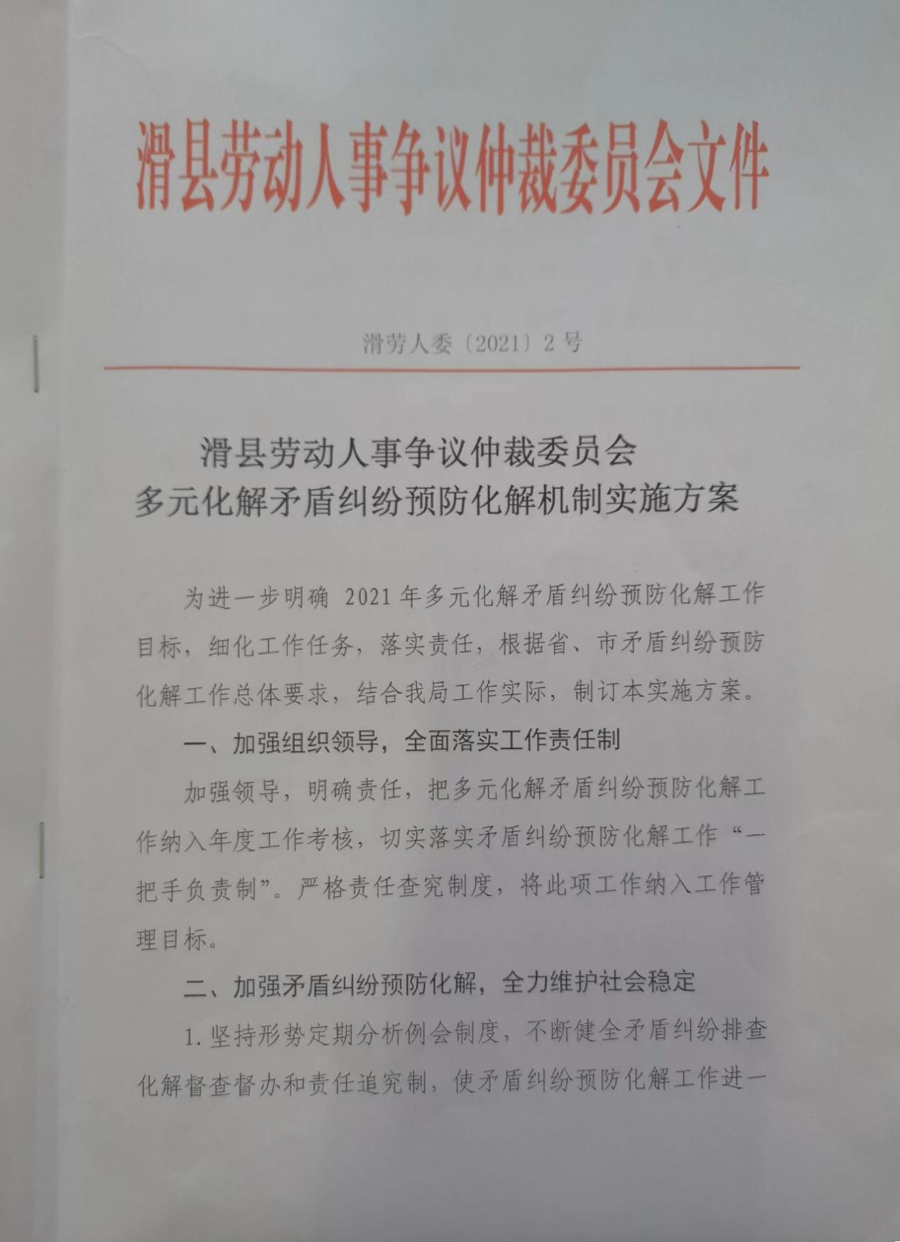滑县劳动人事争议仲裁委员会多元化解矛盾纠纷预防化解机制实施方案