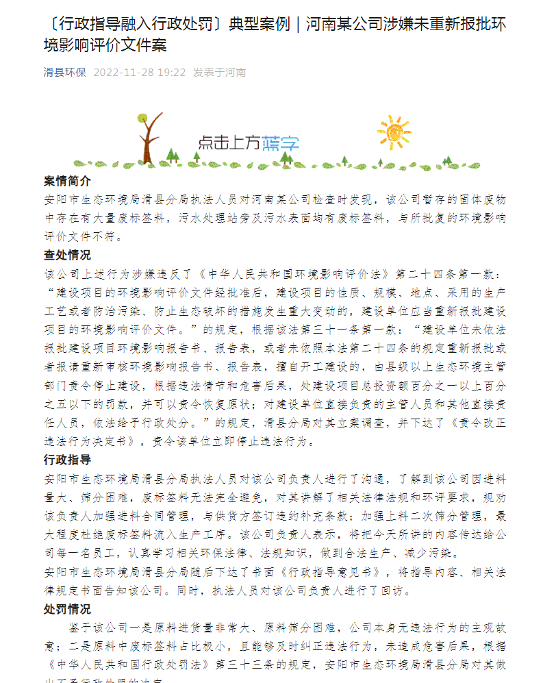 安阳市生态环境局滑县分局行政指导典型案例