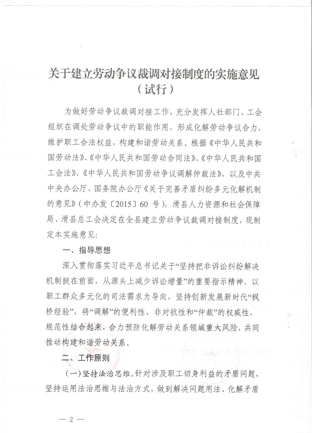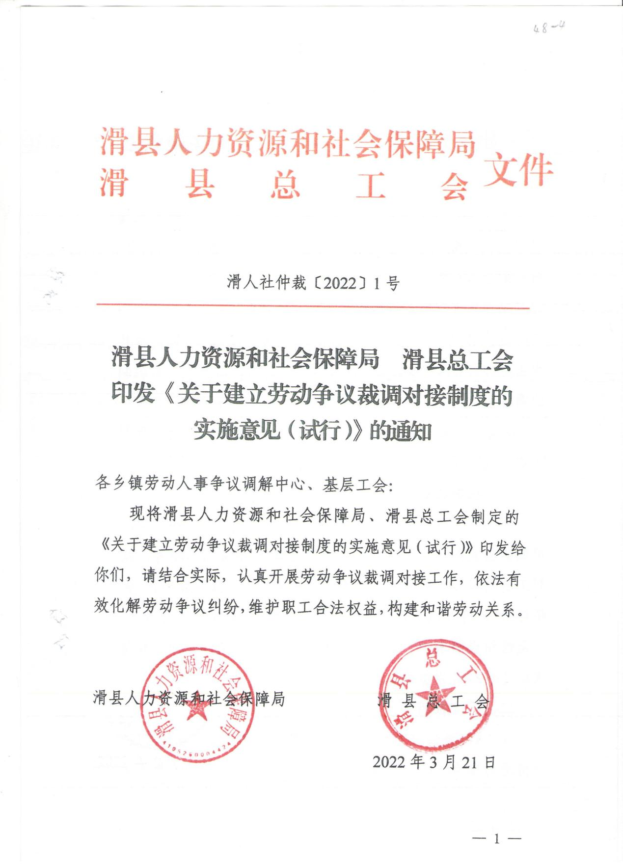 滑县人力资源和社会保障局 滑县总工会印发《关于建立劳动争议裁调对接制度的实施意见(试行)》的通知