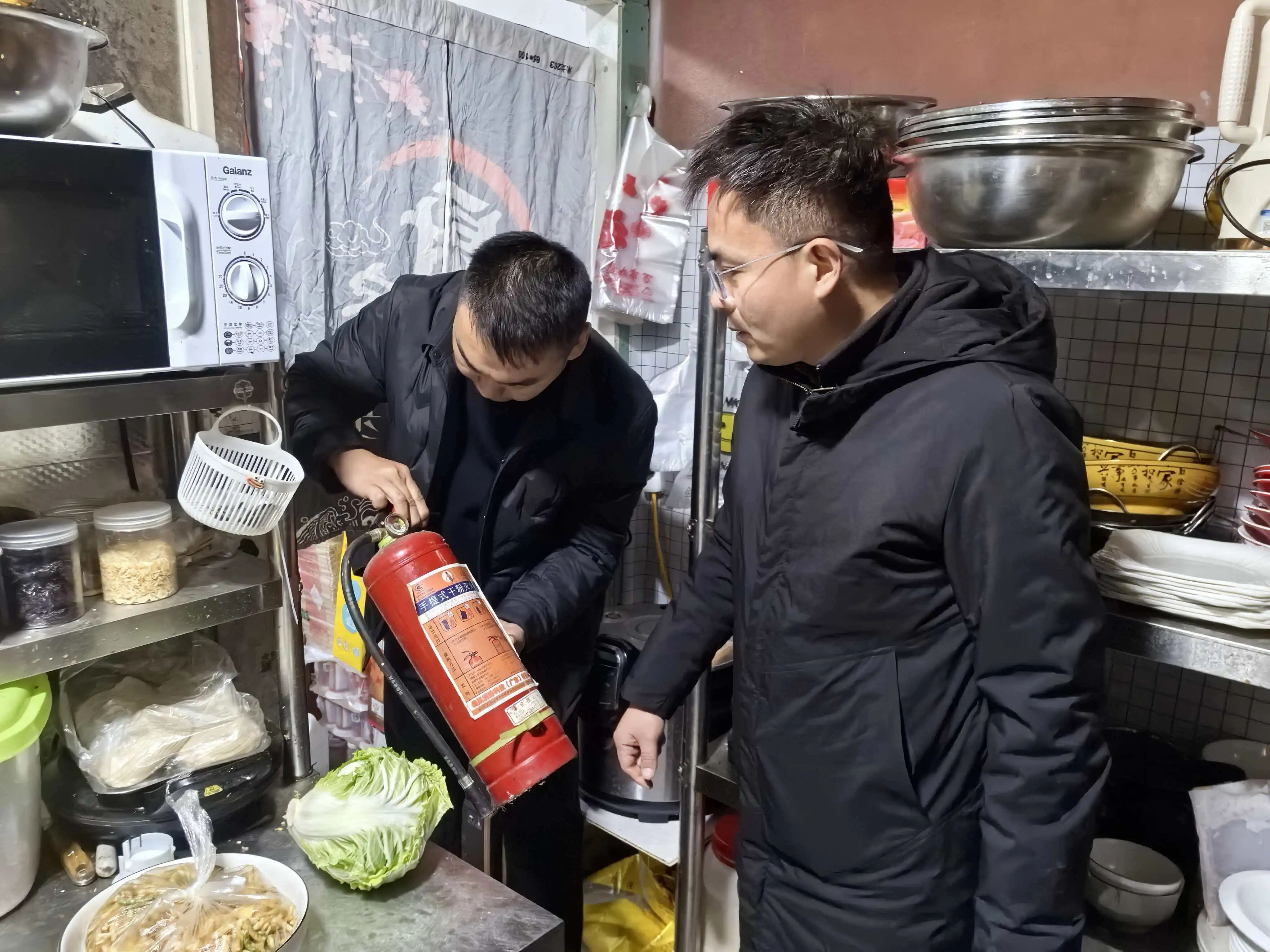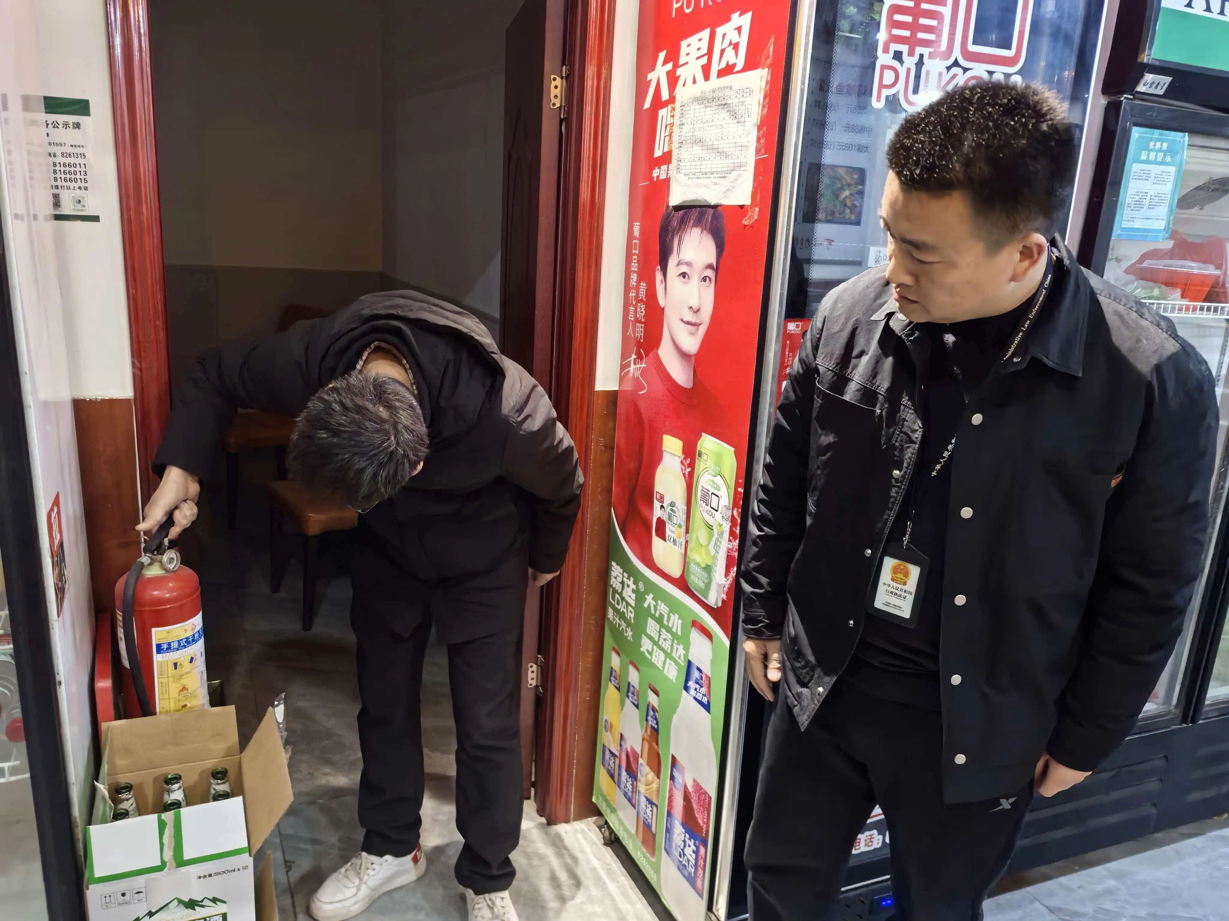 行动中,工作人员深入辖区内饭店、超市等经营场所,聚焦消防安全关键环节,细致排查消防设施配备是否齐全、灭火器是否在有效期内、疏散通道是否畅通无阻。同时,针对场所内电气线路铺设是否规范、有无私拉乱接电线、线路老化等问题进行全面排查,做到隐患排查不留死角、不留盲区。在排查过程中,工作人员秉持“边排查、边反馈、边指导”原则,对发现的安全隐患当场提出整改意见,明确整改要求,并以通俗易懂的方式向场所责任人普及消防安全知识。