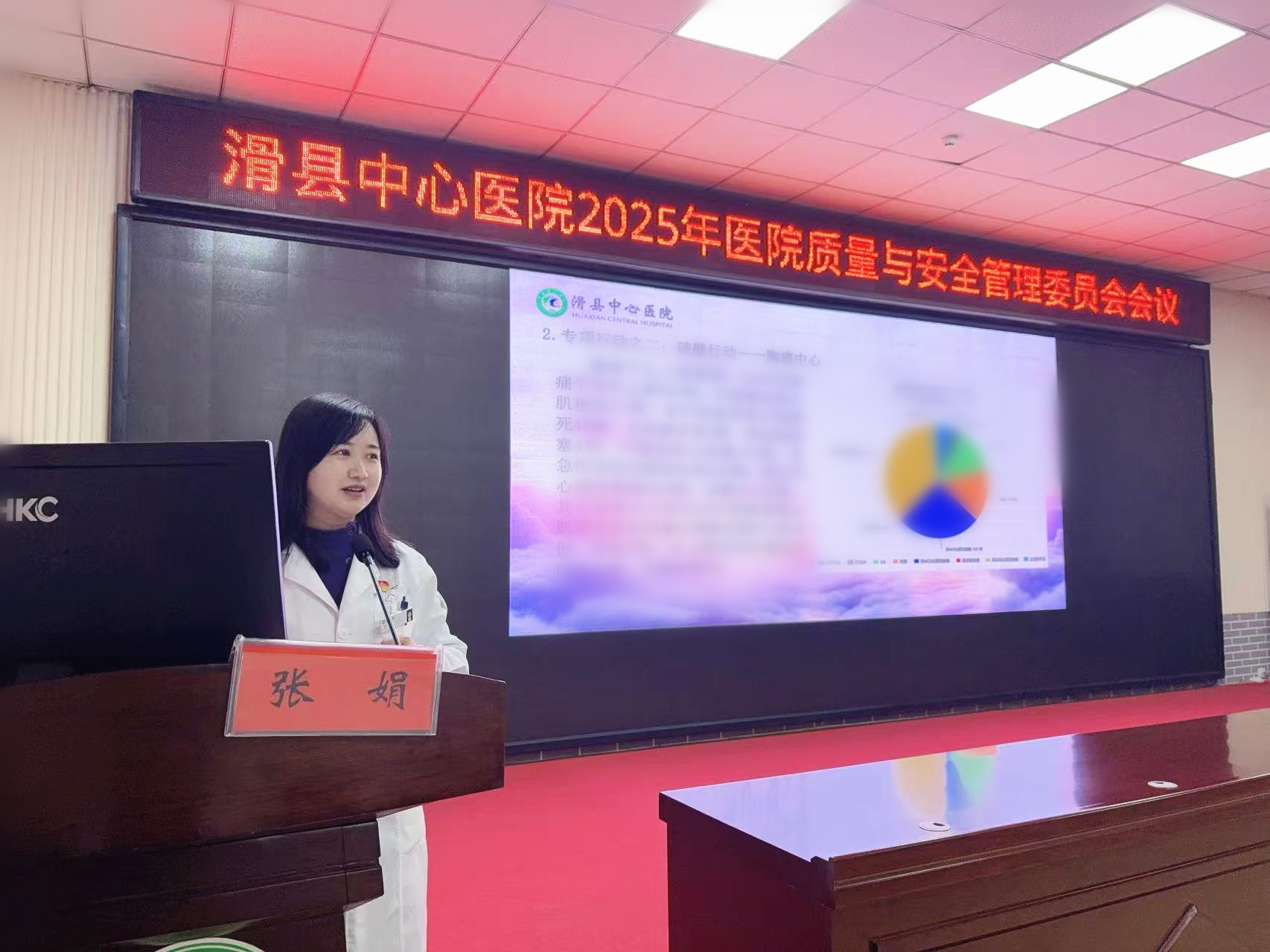 会议严格按照既定议程推进。首先,质控办副主任张娟代表医院质量与安全管理委员会,全面汇报了2025年全院质量与安全管理工作开展情况,详细梳理了全年工作中的成效与存在的不足,并结合医院发展实际,对2026年质量与安全管理重点工作进行了具体部署。随后,会议对《滑县中心医院调整医院质量与安全管理委员会通知》《滑县中心医院千分制绩效考核奖惩实施办法》等4份修订文件进行解读,进一步完善了医院质量与安全管理体系,明确了考核标准,为全年工作有序开展提供了制度支撑。