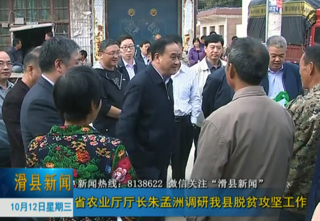 10月11日,省农业厅厅长朱孟洲深入我县调研指导脱贫攻坚工作,安阳市委常委、县委书记董良鸿,县领导陈忠、李向前、赵继芳陪同调研。