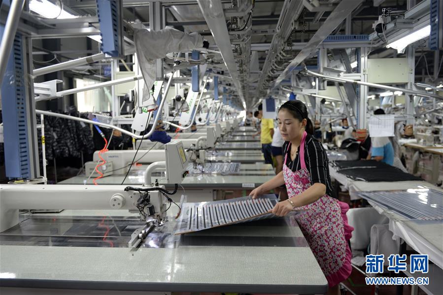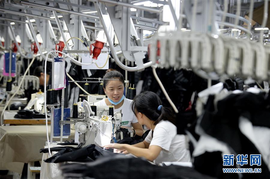 8月23日,滑县“巧媳妇工程”加工企业金泰制衣有限公司工人在车间里工作。
