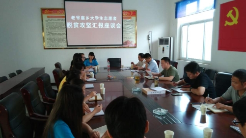 7月25日下午,老爷庙乡党委组织召开了大学生志愿者脱贫攻坚汇报座谈会。