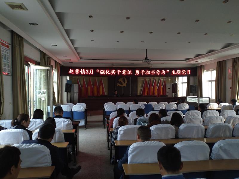 3月28日,赵营镇开展了2019年3月主题党日活动,活动主题是“强化实干意识 勇于担当作为”,镇机关全体党员干部参加了学习并开展志愿活动。