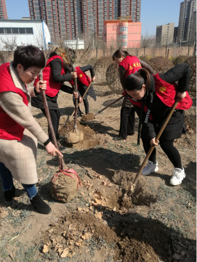 3月11日上午,在第41个植树节来临之际,为倡导绿色环保生活,传递爱绿护绿的生态理念,道口镇第二完全小学开展了以“党旗飘扬迎春风 植树护绿学雷锋”为主题的志愿服务活动。植树现场,在工作人员的指导下,大家分工协作,挥锹铲土,修整树坑,种下一棵棵绿色幼苗。
