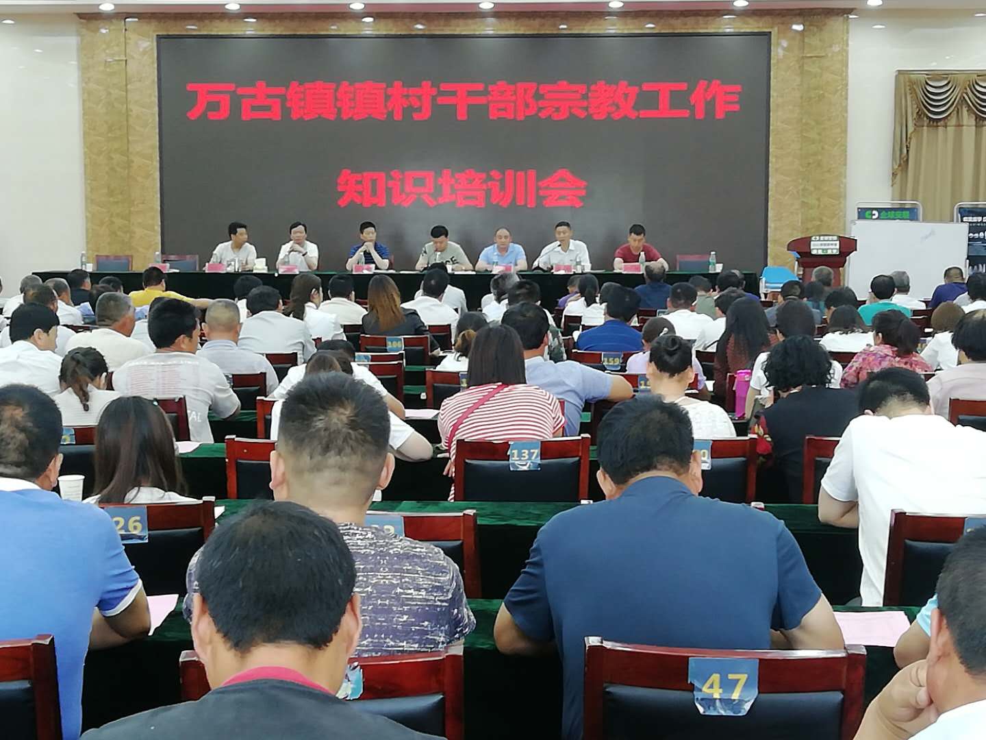 为认真贯彻落实县民族宗教会议精神,进一步开展好辖区民族宗教工作,近日,万古镇组织召开宗教工作知识培训会。镇机关干部、各行政村两委干部、宗教协理员共计200余人参加了会议。