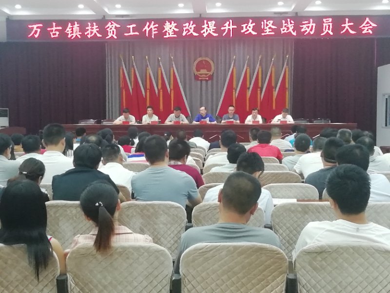 6月19日上午,万古镇在镇政府大会议室组织召开扶贫工作整改提升攻坚战动员大会,镇机关全体干部、驻村第一书记参加了会议。