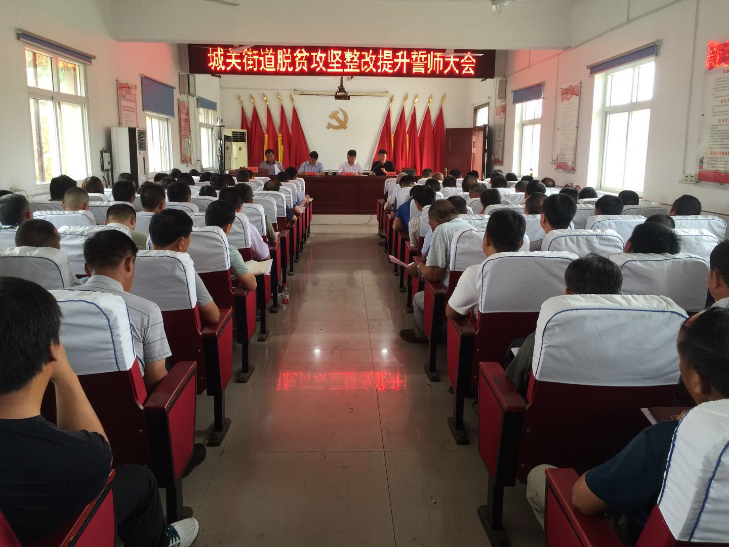 6月21日上午,城关街道组织街道班子成员、镇直部门负责人、驻村第一书记、包村干部及47个村党支部书记、村委主任召开了脱贫攻坚整改提升誓师大会。