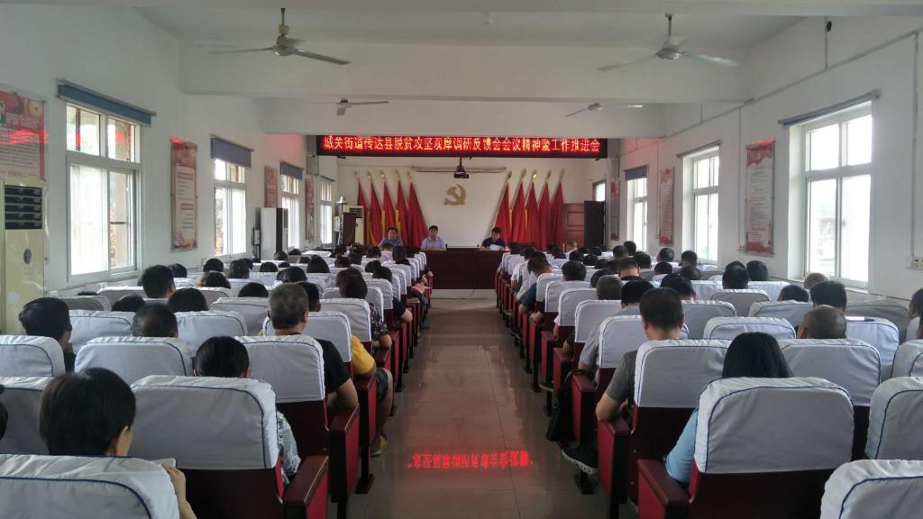 7月8日上午,城关街道组织机关全体人员及驻村第一书记召开专题会议,传达县脱贫攻坚观摩调研反馈会会议精神。