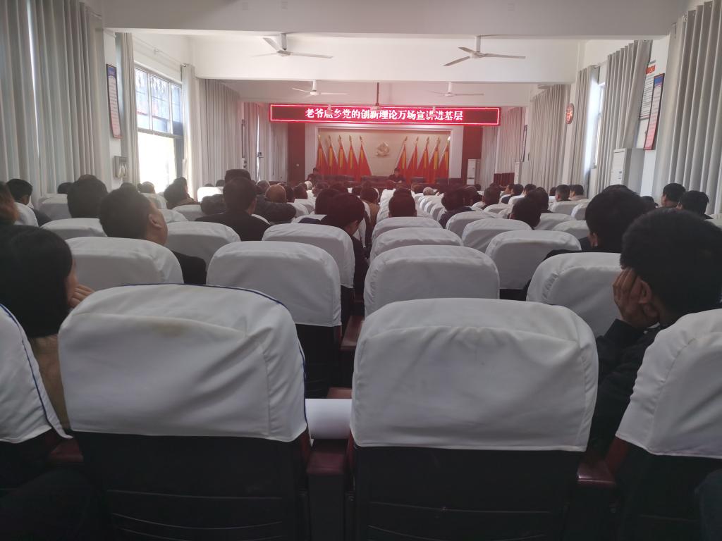 为了扎实推动党的创新理论成果深入人心,切实把习近平新时代中国特色社会主义思想和党的十九届四中全会精神落实到实处,老爷庙乡积极组织乡村两级开展“党的创新理论万场宣讲进基层”宣讲活动。