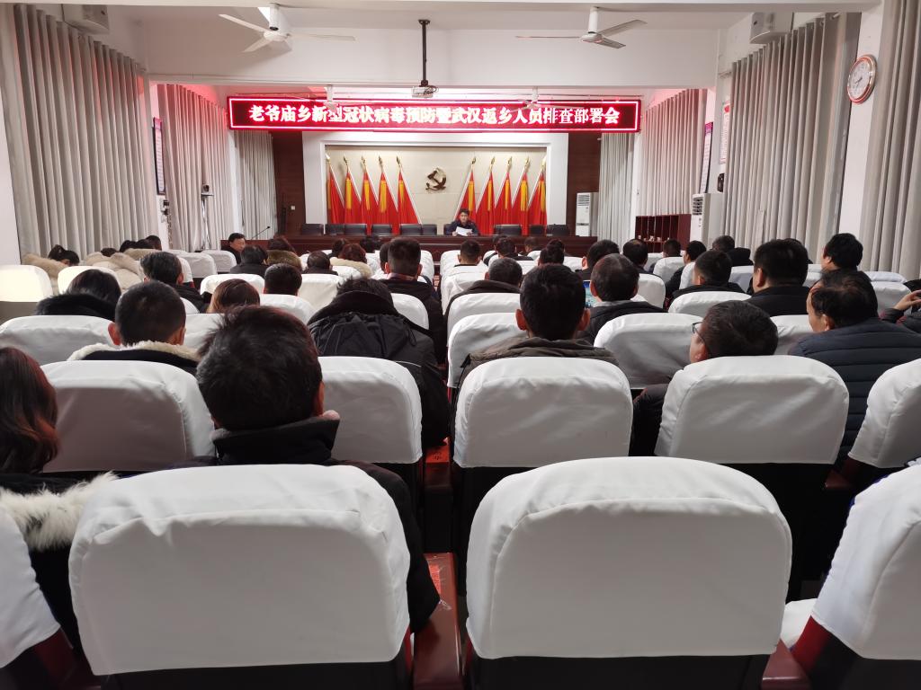 为确保广大群众过一个健康、祥和的春节,保障人民群众身体健康和生命安全,预防在辖区范围内出现新型冠状病毒疫情,老爷庙乡组织全体机关干部召开新型冠状病毒预防暨武汉返乡人员排查部署会。