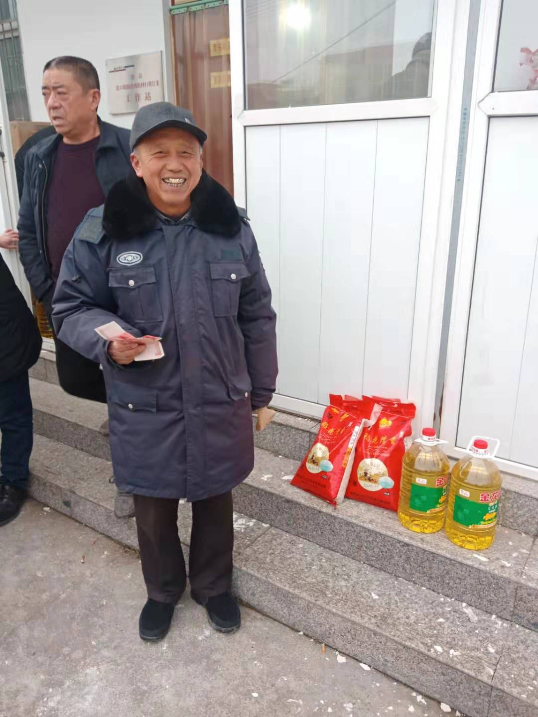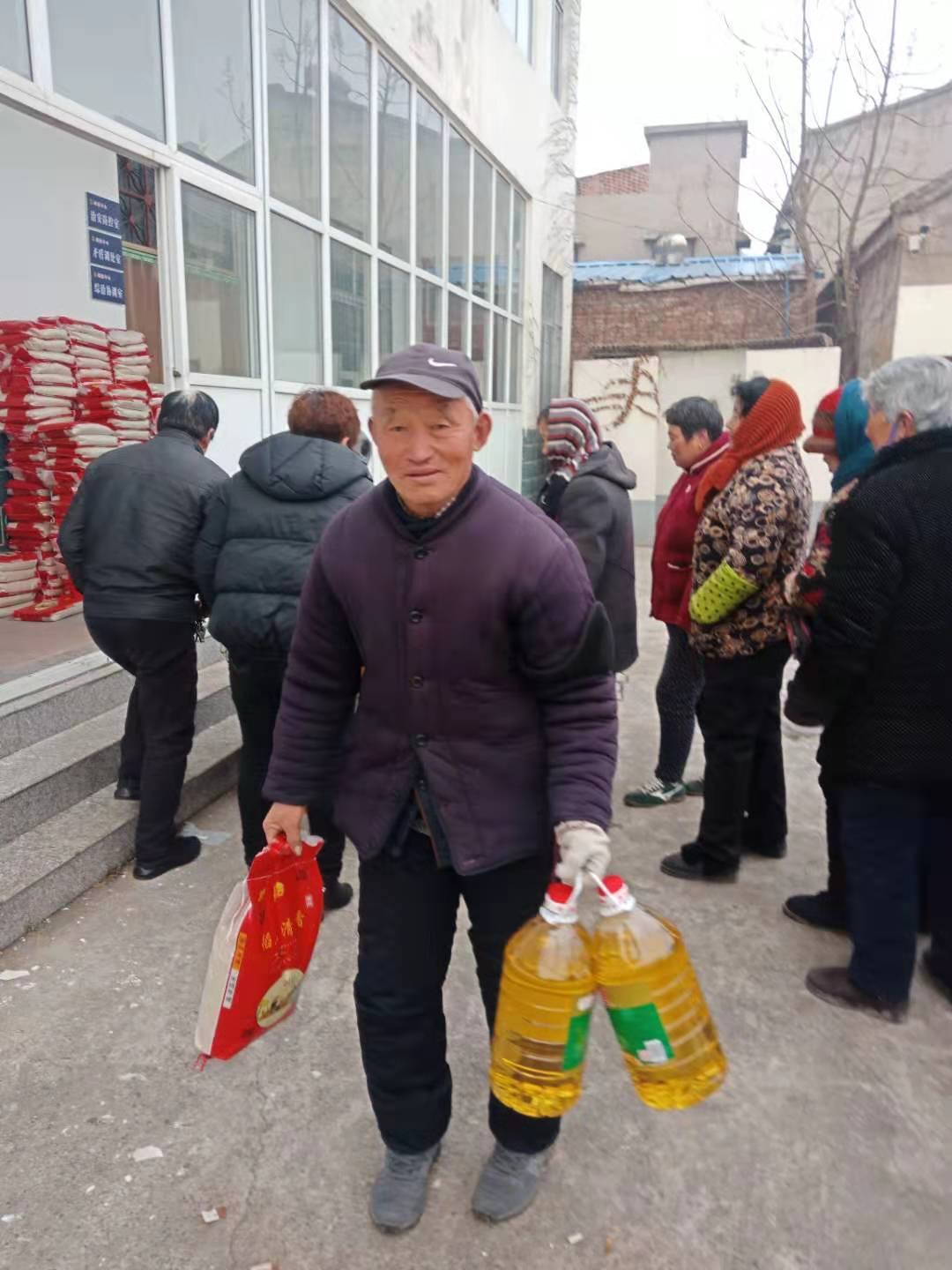 1月21日,程文庄村村委会院内,村两委联合河南林海农业种植有限公司举办慈善献爱心公益活动,为本村70岁以上老人发放大米1袋、10升装食用油1桶。