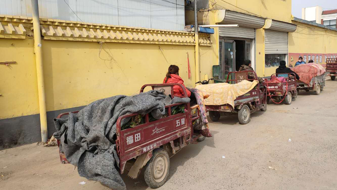 在园区的一处空旷场地,几辆满载菠菜的农用三轮车正整齐地排着队,等着过磅。蔬菜代办员小刘说:“政府怕菜农聚集,就把瓜菜市场关了,每个村设了一个收菜点,由我们这些代办员代收,乡里还派专人维持秩序,不戴口罩、不排队的不让来,收菜车辆进出都要消毒。”“疫情这么严重,还担心菜烂到地里呢,镇政府这个做法真不赖,总算有地方卖菜了。”菜农刘尊义边数钱边说。
