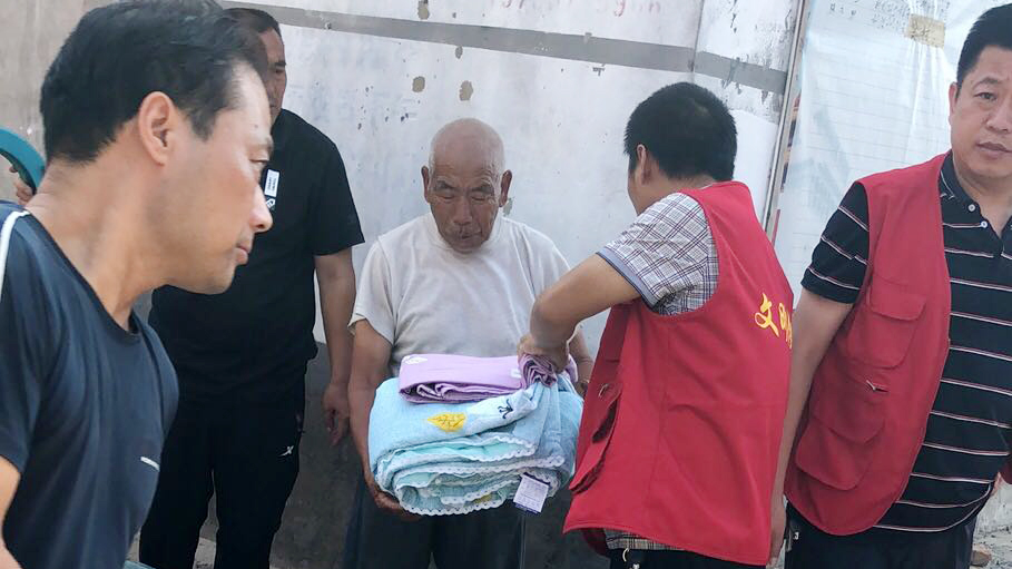 “李大爷,上次你说想要个衣柜和夏凉被,今天给你送来啦,你看看衣柜放哪合适?”接过夏凉被,八里营镇王苑村贫困户李臣恩紧握着驻村第一书记贾用兵的手,脸上洋溢着开心的笑容。