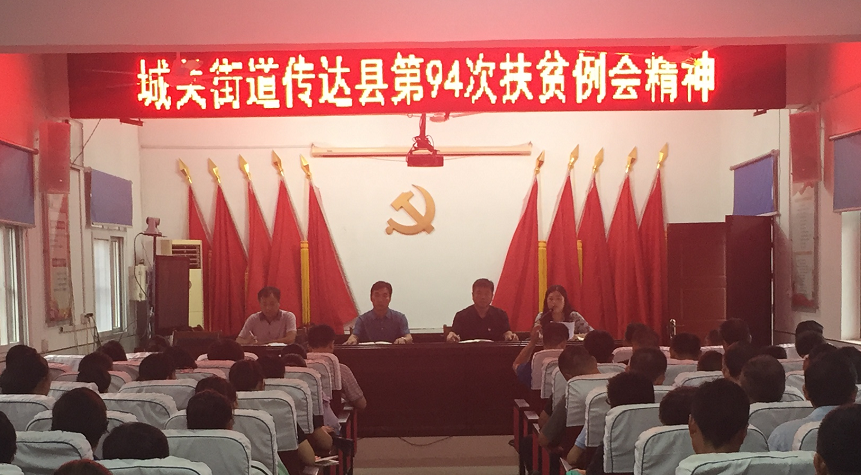 7月16日,我县召开第94次扶贫例会后,城关街道连夜组织班子成员召开脱贫攻坚重点工作会议,并安排部署近期工作内容。