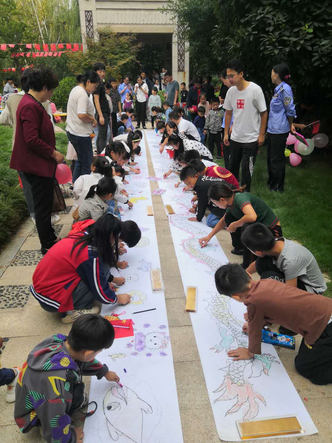 清爽秋分,果香四溢,为喜迎中秋国庆双节的到来,增添小区浓厚的节日氛围,丰富小区居民文化生活,10月1日上午,滑台社区携手新泰物业在新泰龙城小区举办“迎中秋庆国庆”活动,活动包含爱心义诊、趣味猜谜语、儿童手工创意、十米亲子画卷、义剪等。