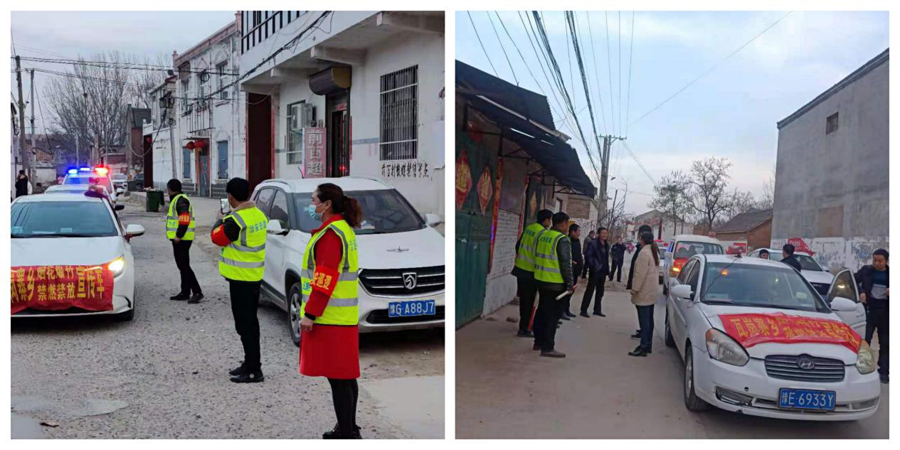 2月11日,瓦岗寨乡党委书记张彦林带领全体班子成员及相关工作人员,会同派出所、市场监管所,在全乡范围内开展烟花爆竹禁放宣传巡查,及时劝阻和快速处置违规燃放烟花爆竹行为。