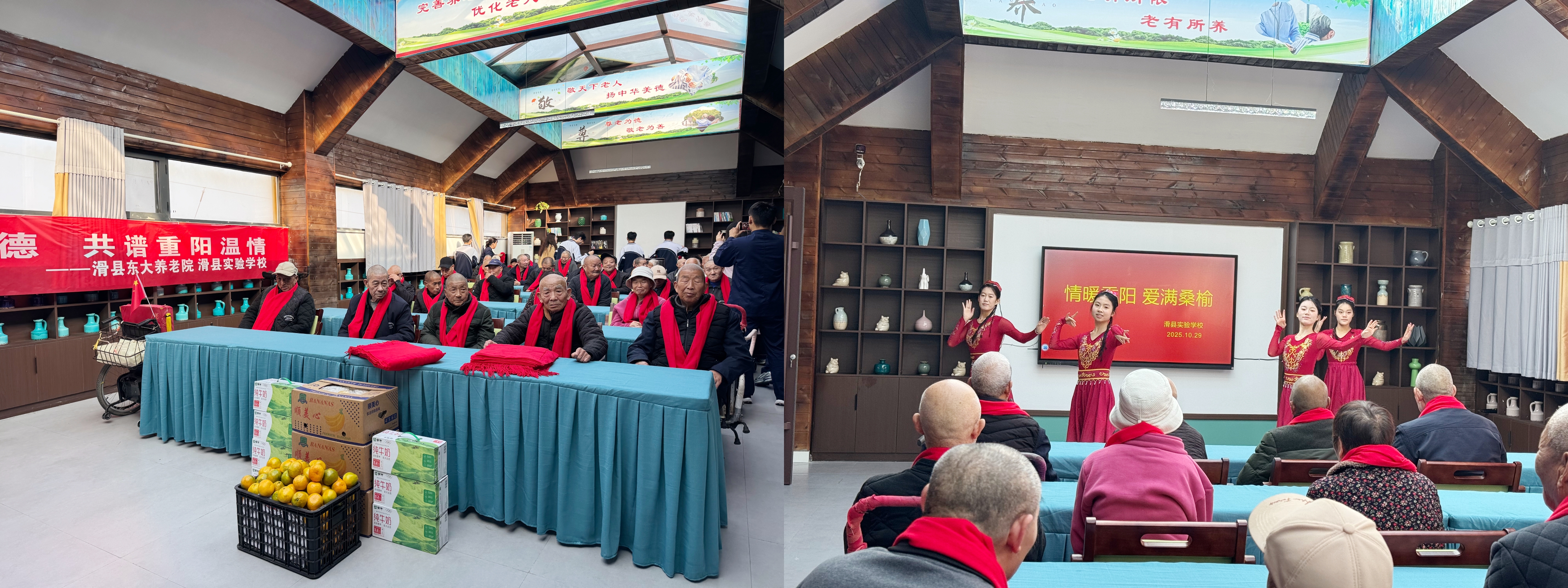 10月29日重阳节当天,滑县实验学校高中部4名老师与12名学生代表走进医养中心,带来民族舞、古筝弹奏、笛子演奏、红歌演唱等文艺演出,还为每位老人系红围巾、送牛奶水果,在传递温暖的同时,让学生实践传承传统美德。