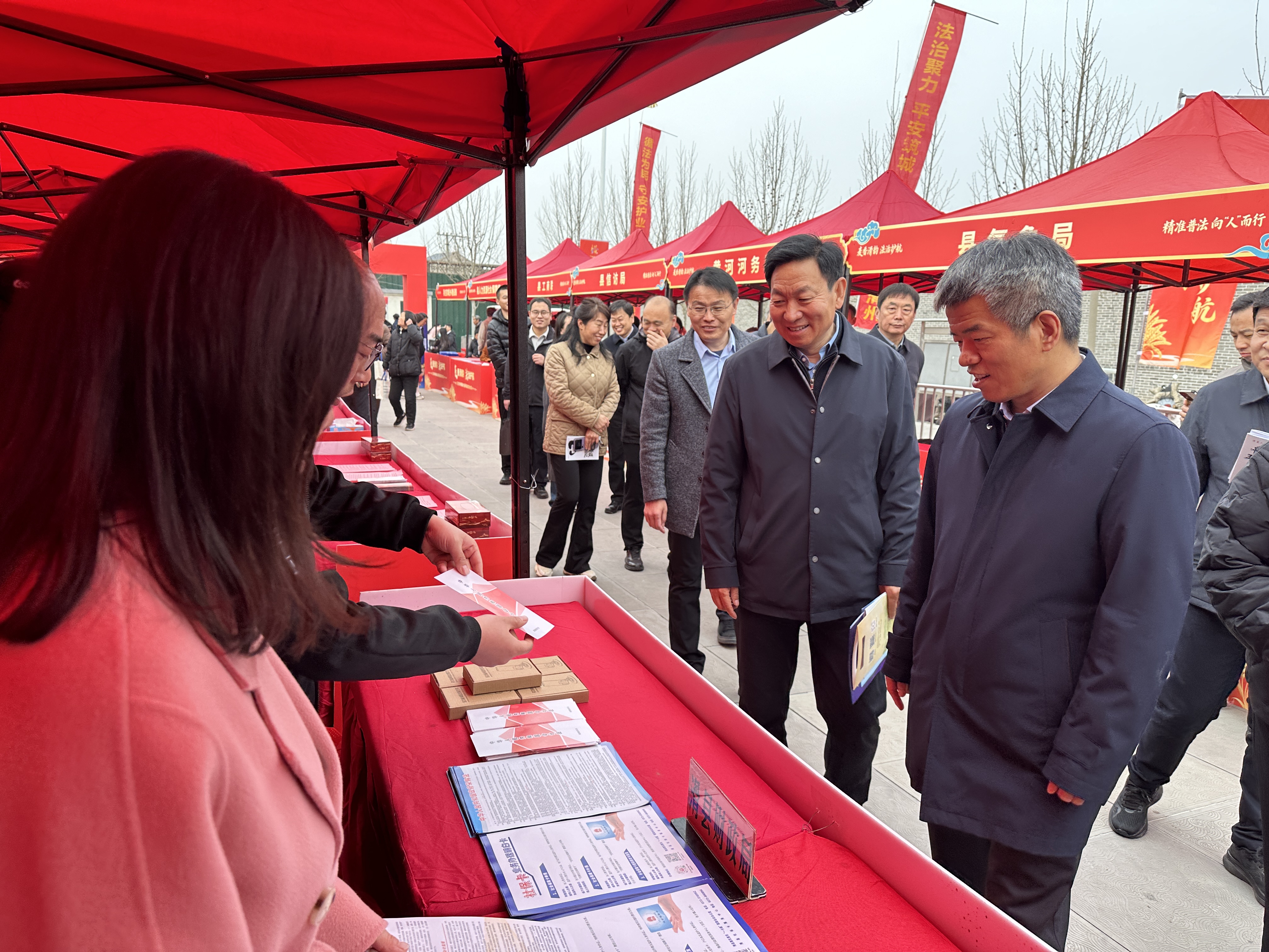 活动中,市、县有关领导来到财政局展台,认真翻阅财政政策法规宣传手册,对财政部门结合自身业务实际宣传法治和惠民政策给予了充分肯定。