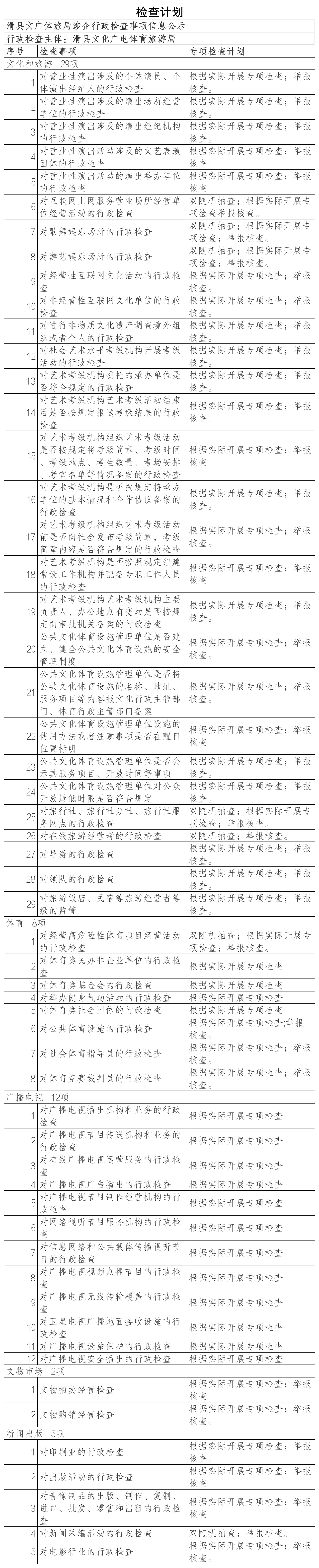 滑县文化广电体育旅游局涉企行政检查计划