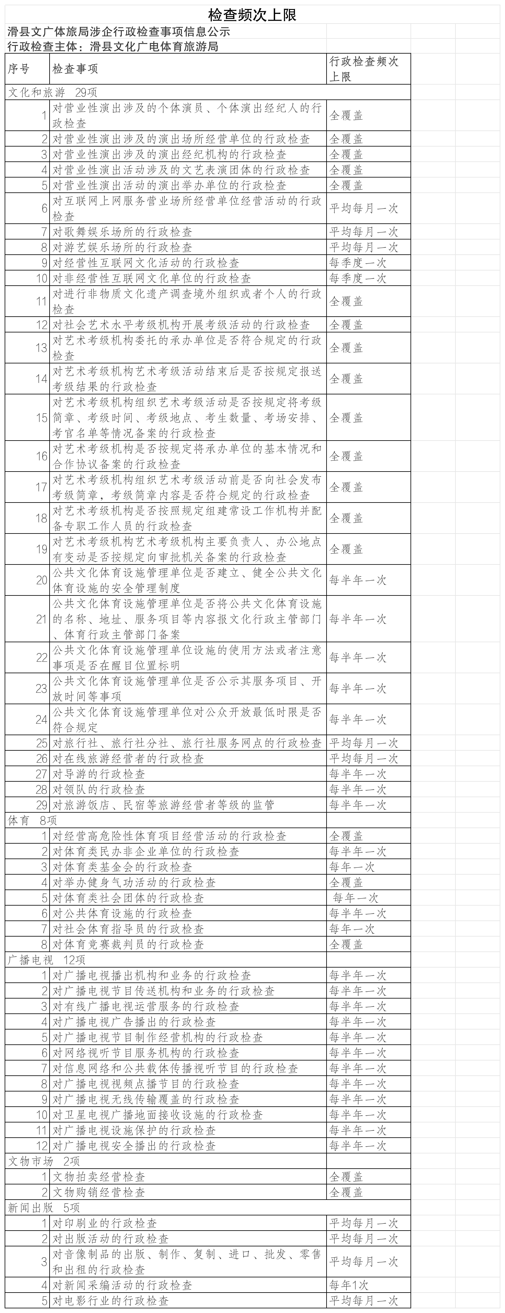 滑县文化广电体育旅游局涉企行政检查频次上限