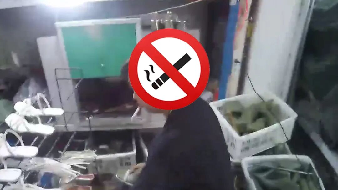 检查人员当即提醒他掐灭香烟