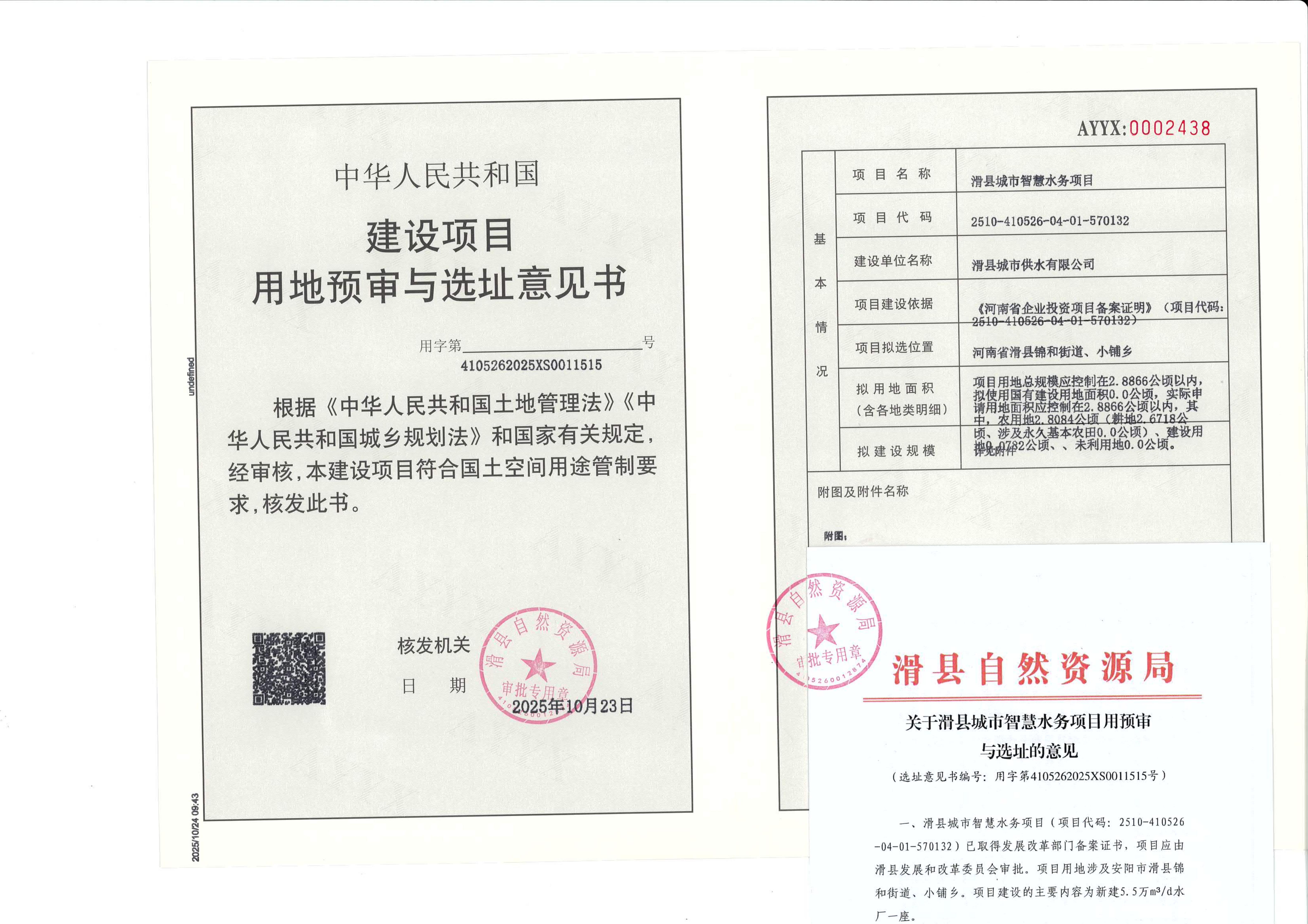 滑县城市智慧水务项目建设用地预审与选址意见书