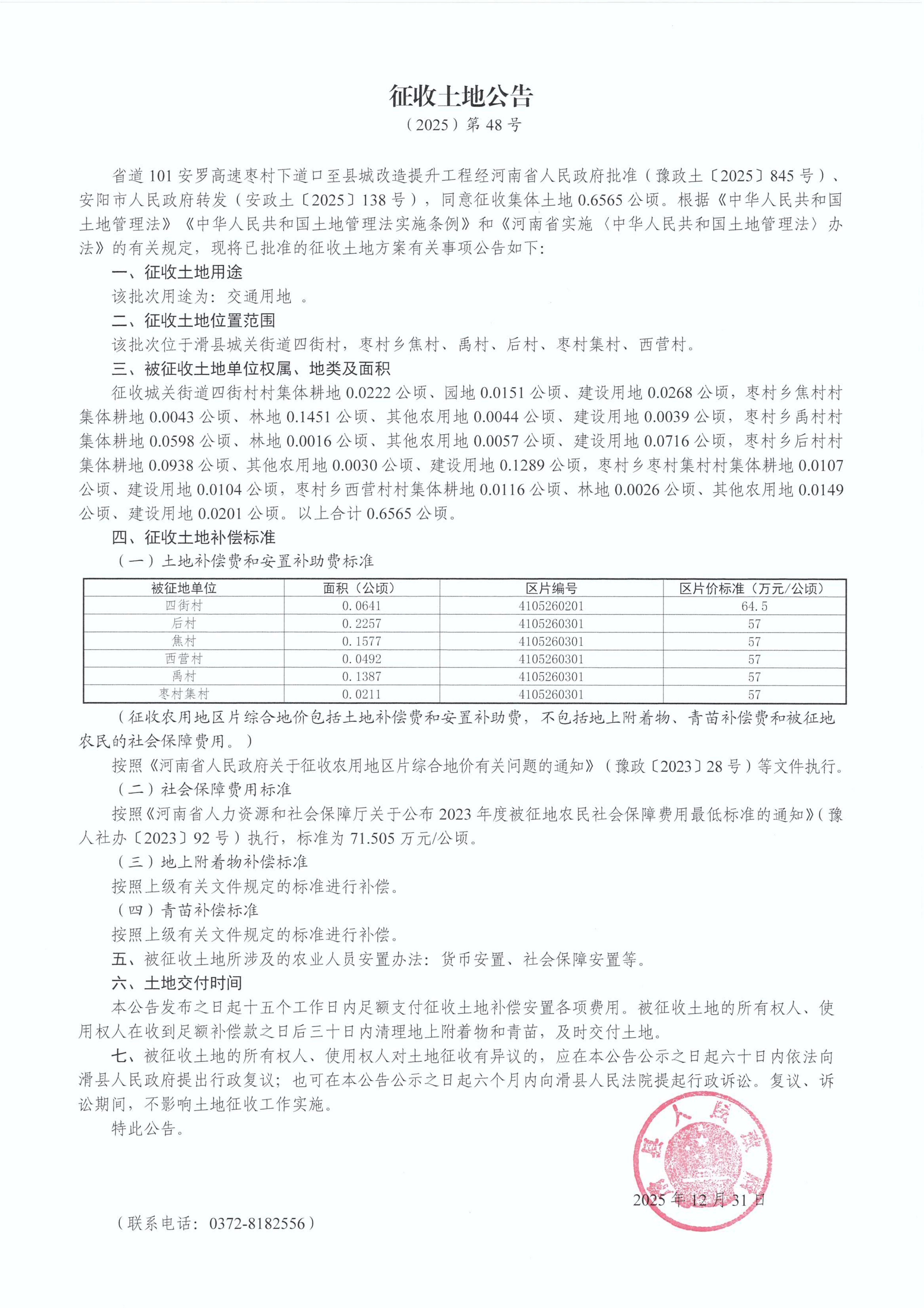 征收土地公告(2025)第48号